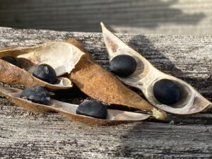 さやを振るとカラカラと乾いた音がしました。これが収穫の合図です。