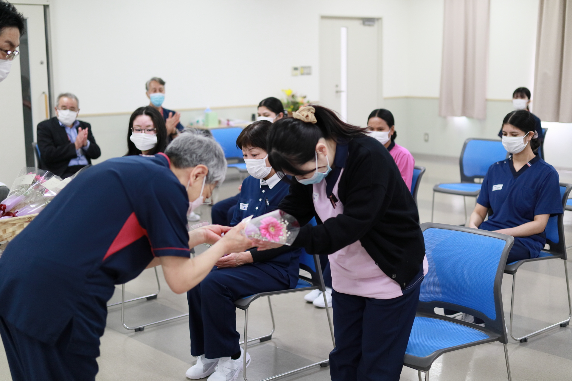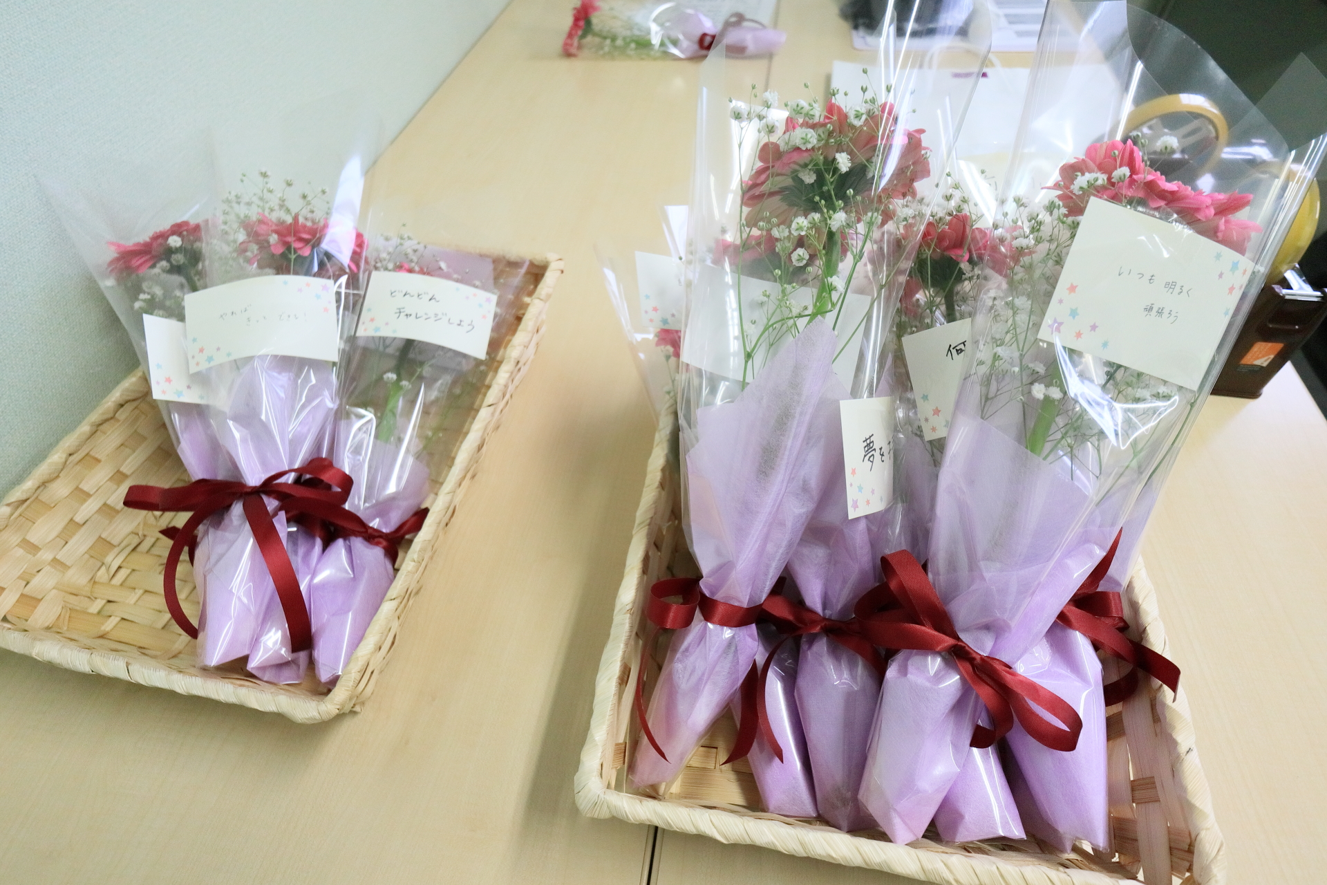 先輩からのメッセージに加え、応援メッセージ付きの花束を贈呈しました。