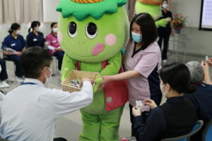 毎年仮装パフォーマンスを行っていますが、今年ははじめて福崎町キャラクター「フクちゃんサキちゃん」が登場しました。
