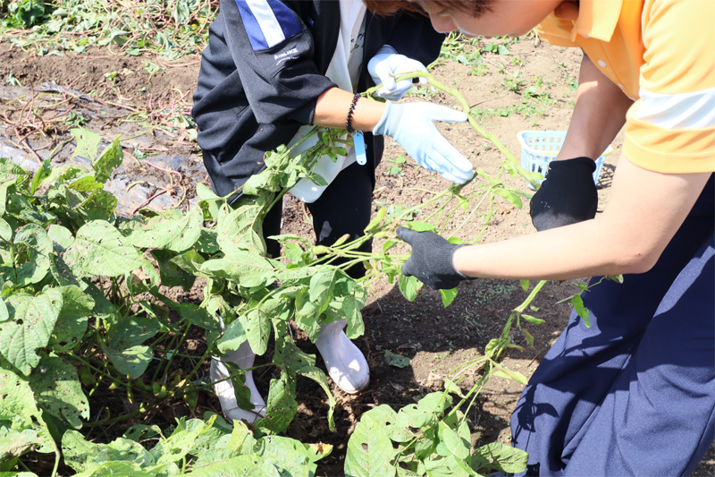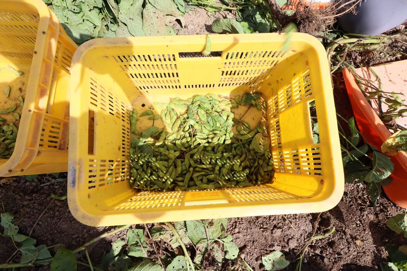 とった豆はツルから外して集めていきます。調理するにはさらに豆を剥いたりと、普段おいしくいただいている豆には手間がかかっていることが体験できました。