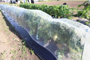 2か月前はこんなに小さかった苗が、ネットを押し上げるほど大きくなりました。