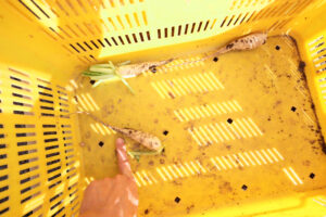 獲り方のコツを教わってから、患者さん・利用者さんでどんどん収穫しました。