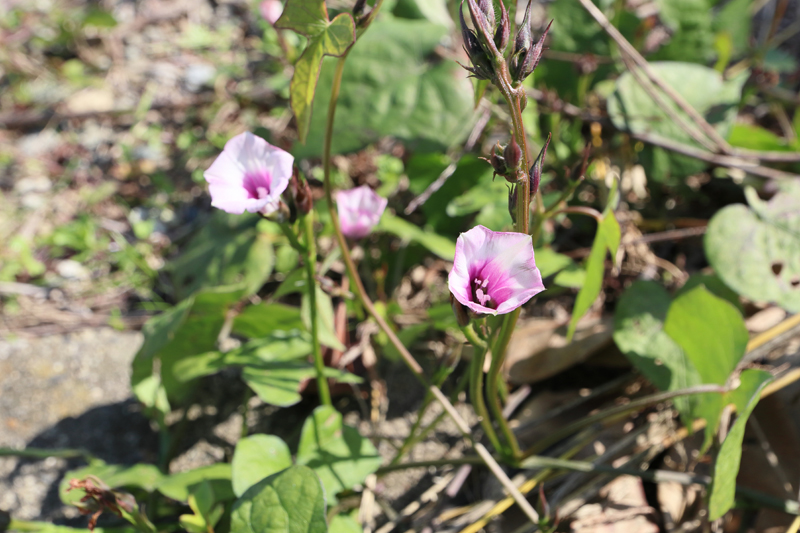 てんとう虫や擬態したバッタ、ホシアサガオ?も見つけました。